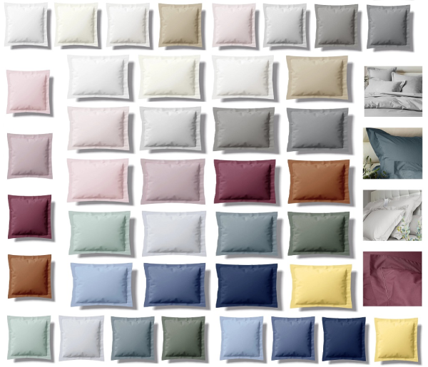 Kissenbezug 65x65 cm of 50x75 cm, gekämmt 100% Perkal-Langfaser Baumwolle. Easy Care-Behandlung für einfache Wartung. farb unveränderlich in der Zeit. Rückzug ohne Waschen. Abschluss Satinstich, Ton in Ton auf die Kissenbezüge.