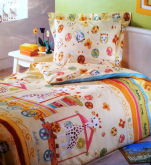 Duvet cover 140x200/220 and pillowcase 65x65 cm multi hedgehogs in 100% cotton. Reversible duvet cover with adorable little yellow, orange, purple and green hedgehogs, on a white background. Bottle shape finish with flap. Reversible pillowcase to match the duvet cover.