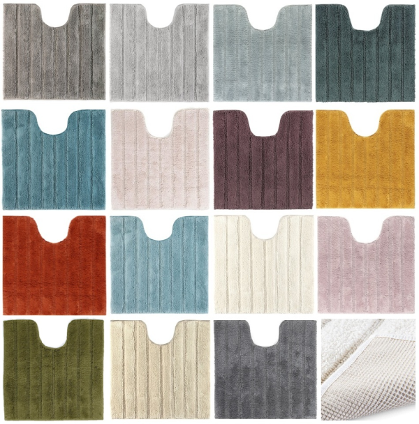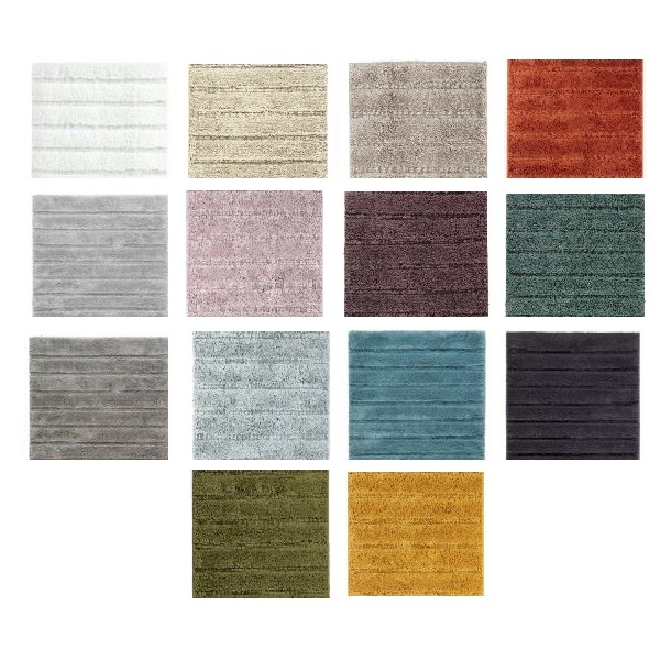 Bathmat cali 100% cotton and non-skid. Dimension: 60x60 cm, 60x100 cm, 70x120 cm, also available in wc mat 59x59 cm. Colors: Ivory, red tomato, green, brown linen, anthracite gray, slate gray, light gray, beige, turquoise, pink, ice blue, ocean blue...