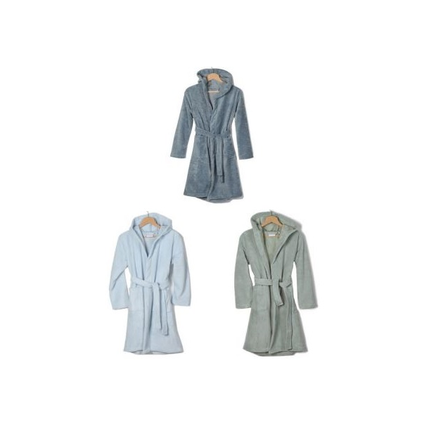 Unisex children's bathrobe for girls and boys, with hood. Inner bathrobe 100% cotton terrycloth inside (absorbs water after showering or bathing) and 100% polyester velvet very soft and warm outside (pleasant warmth to stay in the armchair or sofa). Bathrobe with 2 side pockets + belt with tie. Washable at 60°C and dryer allowed.