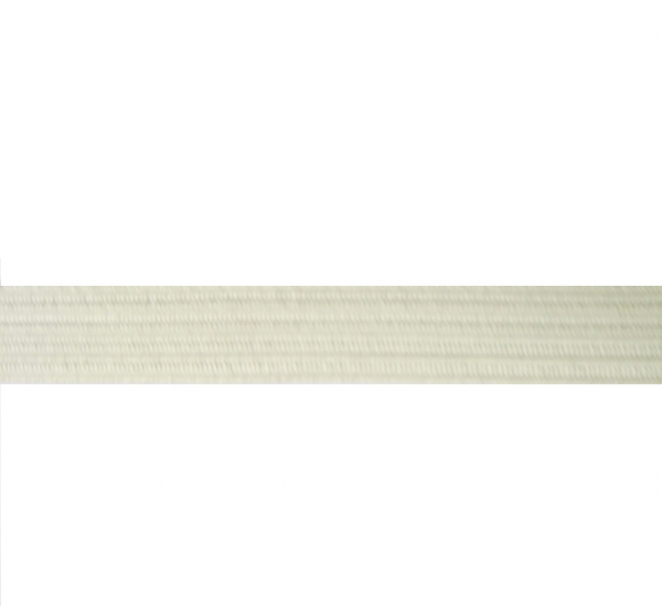 Braided flat elastic 9 mm white. Resistant, extensible and washable up to 95°C. For professional clothing: clothes, belts, masks, crafts, ... The price indicated is by the meter.