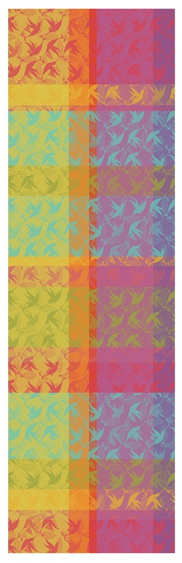 Table runner 55x180 cm 100% cotton, multicolored humming birds, 220 gr/m².