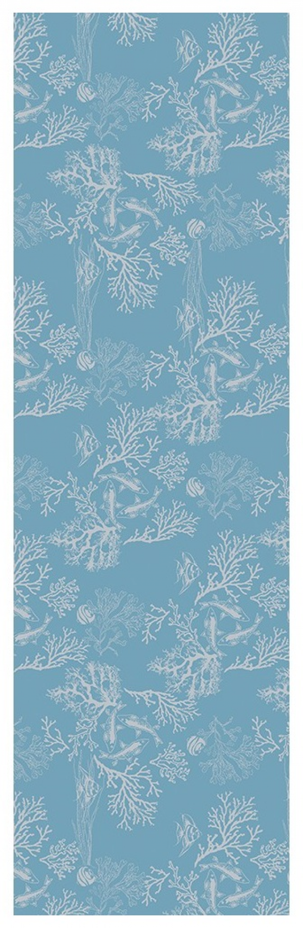 Table runner 55x180 cm 100% cotton, blue corals, fish and shells, 220 gr/m².