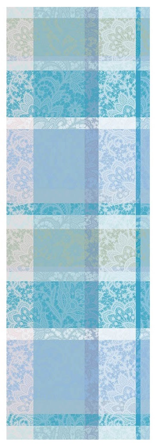 Table runner 55x180 cm 100% cotton, flower lace: turquoise, blue and green, 220 gr/m².