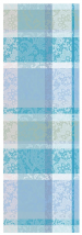 Chemin de table 55x180 cm 100% coton, dentelles de fleurs : turquoise, bleu et vert, 220 gr/m².