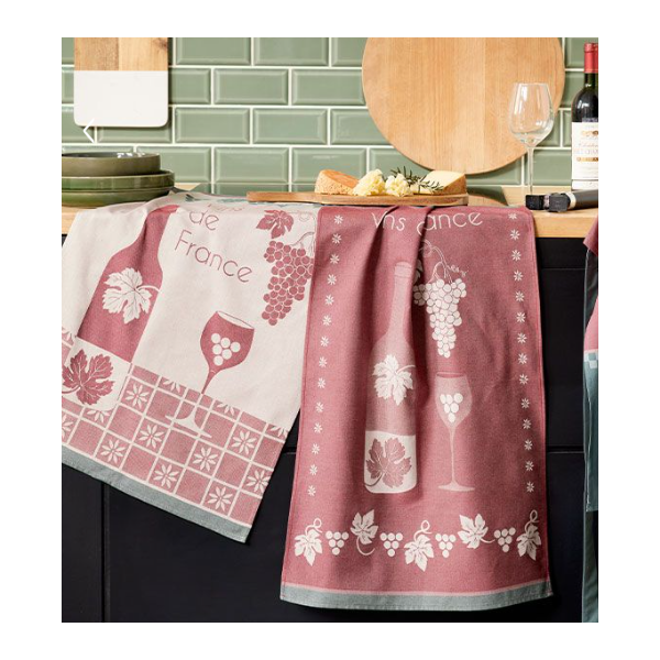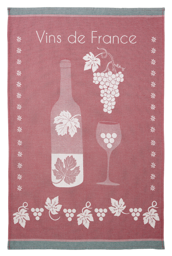 Essuie vaisselle Vins de France , 100% coton jacquard absorbant et résistant, 50x75 cm.