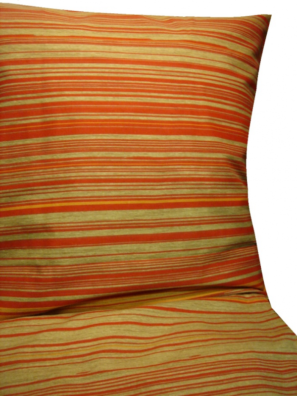 Housse couette 240x220 + 2 taies 65x65 cm Flanella 100% coton flanelle. Dessins de lignes beiges, oranges et rouges. Parure avec des fils de pur coton de la meilleure qualité composent le tissu de flanelle, doux idéal pour réchauffer les nuits les plus froides.