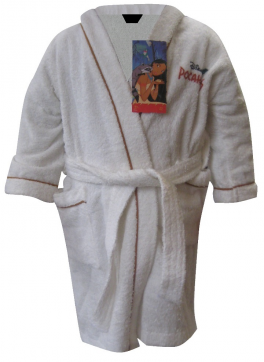Peignoir uni blanc cassé, inscription "Pocahontas" et Disney sur le côté devant,
