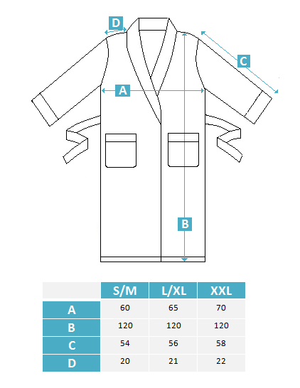 Badjas met shawlkraag 100% katoen. Badstof badjas met 1 riem en 2 zakken. Comforabele snit, zacht gevoel, 360 gr/m², behoudt de helderheid van de kleuren na wassen. Verkrijgbaar in de maat S/M, L/XL und XXL. Kleur : wit.