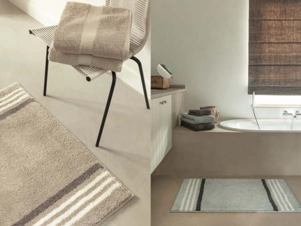 Badmat lijnen 100% acryl en antislip. Afmetingen: 60x60 cm, 60x100 cm, 70x120 cm en 60x55 cm WC-toren (TWC). Wasbaar 40°C.