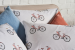 Fiets dekbedovertrek en sloop 65x70 cm in 100% katoen. Omkeerbaar dekbedovertrek met 2 gezichten met roze, beige en blauwe fietsen op een achtergrond van witte en lichtgrijze schuine lijnen. Flesvormige afwerking met klep van 35 cm. Omkeerbare sloop passend bij het dekbedovertrek, tas sloop. Dekbedovertrek 140 verkocht met 1 sloop. Dekbedovertrek 200, 240 en 260 verkocht met 2 slopen.