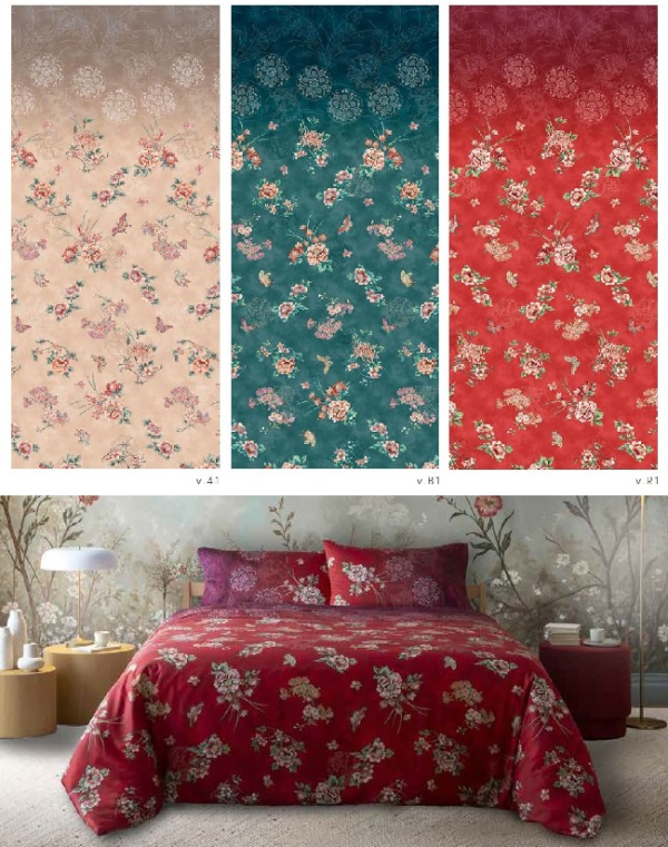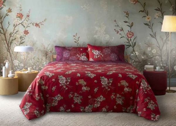 Dekbedovertrek (en sloop) 100% katoen satijn Esperidi Bassetti. Afdrukken met vaste kleur.
