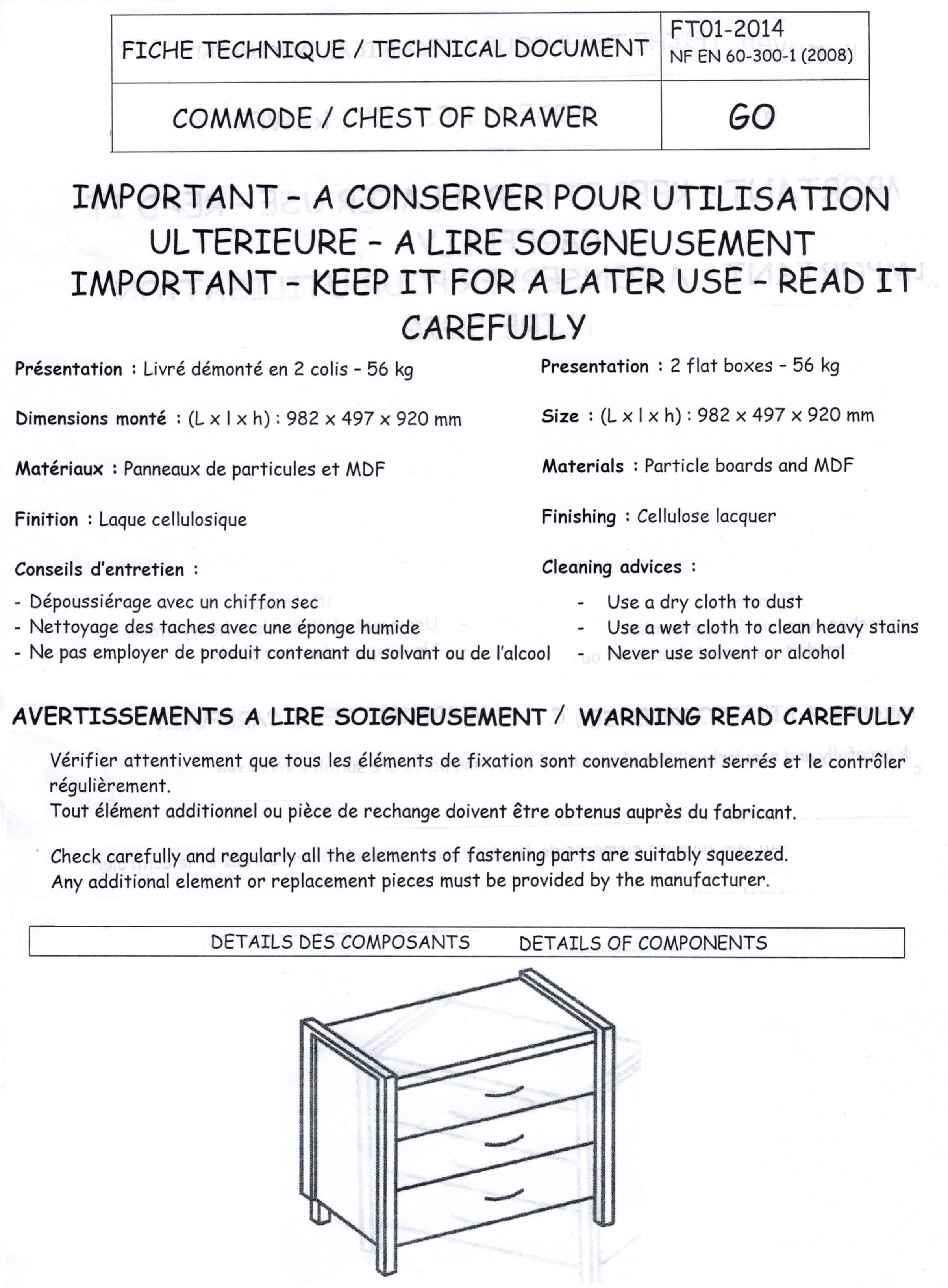 | Grootte | Longueur 98,20 cm x Largeur 49,70 cm x Hauteur 92 cm |